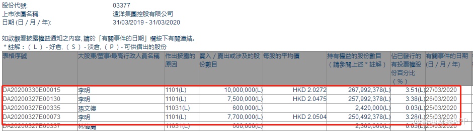 智通财经APP获悉,联交所最新资料显示,3月25日至27日,主席兼执董李明分别增持远洋集团(03377)770万、750万、1000万股,每股作价分别为2.0504港元、2.0475港元及2.0272港元,总金额约为5141.63万港元。智通财经APP获悉,增持后最新持股数目约为2.68亿股,最新持股比例为3.51%。