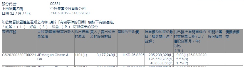 智通财经APP获悉,联交所最新资料显示,3月25日,摩根大通增持中升控股(00881)317.72万股,每股作价26.83港元,总金额约为8524.42万港元。增持后最新持股数目约为2.05亿股,最新持股比例为9.03%。