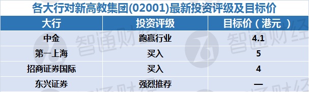 一、各大行对新高教集团(02001)最新投资评级及目标价