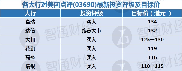 二、各大行对美团点评(03690)最新投资评级及目标价