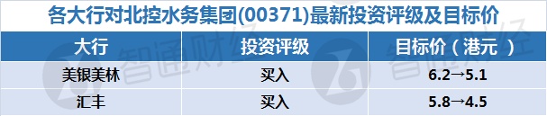 四、各大行对北控水务集团(00371)最新投资评级及目标价