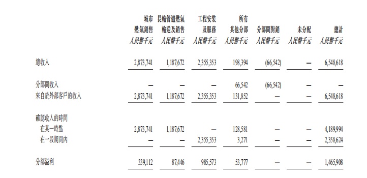 工程安装及服务对应的是集团的煤改气接驳业务板块。2018年起,天伦燃气与河南省政府合作,开始大力发展煤改气改造业务,平均每户接驳费收入为 2,750 元(不含增值税)左右。从财务报表的分部收入中可以看出,工程安装及服务收入从2018年度的1,748,407千元增长至2,355,353千元,增长幅度达到34.7%。