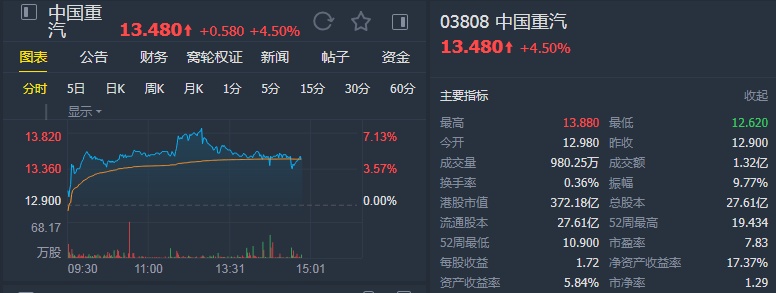 该行称,撇除一次性费用后,公司去年核心盈利同比下跌10%。去年下半年销售及行政开支同比增长30%,对营业利润率构成压力。该行表示,将公司2020年的每股盈利下调13%至1.455元人民币,目标价由原来的16港元下调至14港元,维持“中性”投资评级,还表示仍对重型运输行业的中期前景保持乐观审慎态度,认为在各方面实施的支持政策或会在今年第二至第三季推动替代需求。