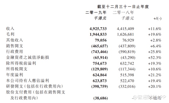 2019年,百富环球录得收入为49.26亿港元,同比增长11.6%;毛利为19.45亿港元,同比增长19.6%;股东应占溢利为6.24亿港元,同比增长19.4%。