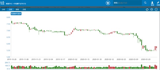 二级市场方面,中裕燃气股价于国内公共卫生事件爆发中依旧能稳定运行,但在3月9日突发原油价格大跌事件中引发的市场担忧中,公司股价跟随板块出现回调,目前公司股价已经有所企稳,而在业绩发布当日更是录得5.24%的大幅上涨,128.8万股成交量也较前一个交易日放大近1.4倍,呈现底部放量冲涨态势。