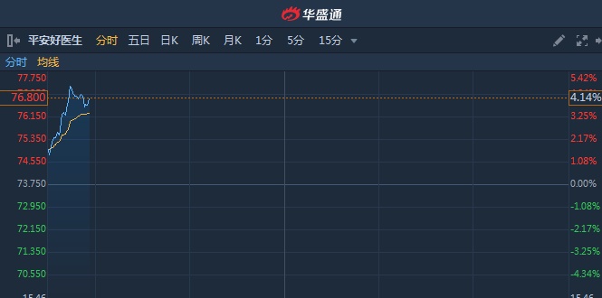 智通财经APP获悉,平安好医生(01833)延续涨势,获国泰君安唱好,并指互联网医疗政策逐步从谨慎走向宽松,在卫生事件的需求带动下实现了突破式的进展。截至9时55分,涨4.14%,报价76.8港元,成交额9725万。