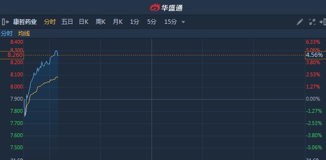 智通财经APP获悉,康哲药业(00867)获主席兼CEO林刚增持300万股,涉资2365.47万港元,早盘股价急升,截至10时09分,涨4.56%,报价8.26港元,成交额1701万。