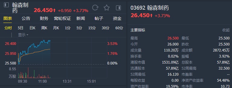 该行表示,将翰森制药2020-2021年每股盈利预测下调4.3%-7.3%,以反映降低涉及全国实施药品集中采购(GPO)的药物销量等因素,目标价由33.9港元降至32港元,予“买入”评级。