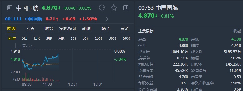 该行表示,预期会有更多中小型航空公司因流动性的问题退出市场,而公司将会有更多并购机会,故降2020年每股盈利预期28%,目标价由7.6港元降至6.6港元,重申“买入”评级。