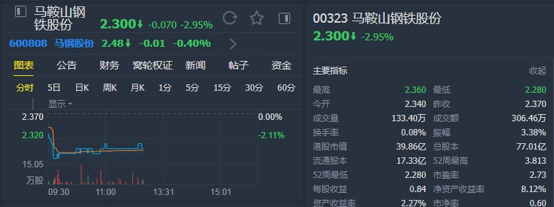 该行下调马钢今明两年盈利预测分别15%及10%,目标价由3.1港元降至2.75港元,维持“中性”评级,主因现价估值合理,毛利率改善可抵销持续的解雇员工的开支。