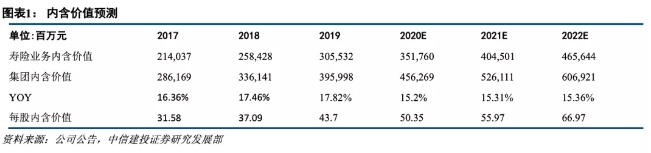 公司 2019 年净利润实现较大幅度增长,公司保持较高的分红率;2020 年转型将进入冲刺阶段,短期 NBV增速仍有压力,但公司内含价值增长相对稳健,注重科技赋能队伍升级和服务增值,长期来看具备投资价值;公司当前股价已下行至历史低位,按照 2020 年 P/EV 估值仅为 0.5 倍,优质资产被严重低估。保险公司由于业务的长期性,内含价值会有一定内生性增长,我们预测2020年公司内含价值增长15%,实现A股每股内含价值50.03元,龙头险企应当享受 1-1.5 倍估值,我们给予公司A股 1 倍 P/EV 估值,目标价 50.3 元,当前股价 26.37 元,维持“买入”评级。