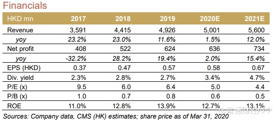 该行表示,该公司管理层给出了2020年指引,由于公共卫生事件的不确定性可能会影响近期的客户需求,预计收入增长将持平,毛利率(39%以上)和营业利润率(15%以上)将保持稳定。目前,发货已延迟了一个月,但现在其EMS和供应商的产能已经恢复了90%以上。该公司认为,与竞争对手相比其能更好地承受冲击,因为公司产品能够全面地满足客户需求(如mPOS和用于食品配送的智能POS),且公司拥有32亿港元的净现金,足以支付营运资本和投资。