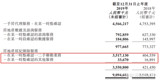 一手房代理服务是易居的核心业务, 2019年取得45.7亿元收入及12.2亿元利润,营收占比50.2%;房地产数据及咨询服务录得收入9.78亿元及2.32亿元利润;值得一提的是,2019年房地产经纪网络服务录得收入35.5亿元,同比增长743%,营收占比也从2018年的7.1%提升至39%,成为收入大幅增长的“功臣”,并且实现了业务板块的扭亏为盈,带动整体毛利率从42.5%提升至58.9%。