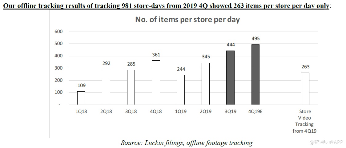 我们从2019年第四季度开始线下追踪的981个门店日的结果显示,每家门店每天只追踪到了263件商品。