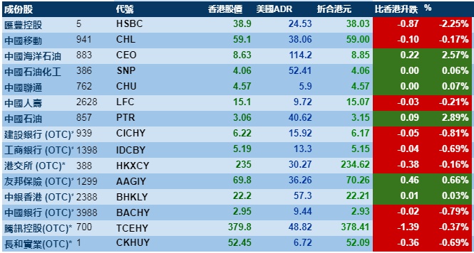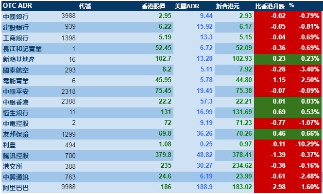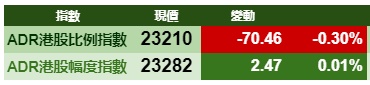 智通财经APP获悉,美股收市上涨,但港股ADR指数全日偏软,按比例计算,收报23210点,跌70.46点。