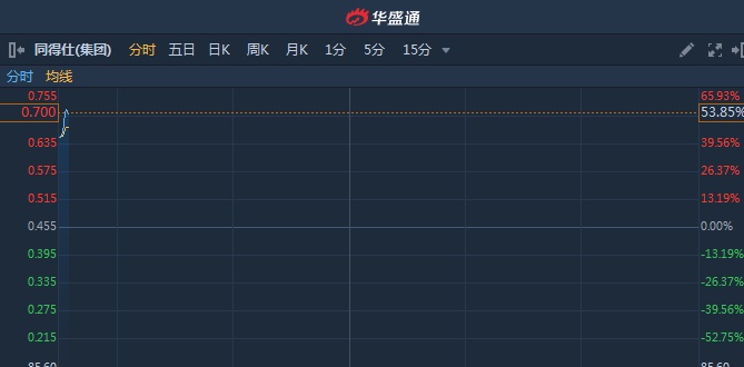 智通财经APP获悉,同得仕(集团)(00518)拟以2.76亿人民币出售位于深圳福田的物业,今日复牌,早盘大幅高开,截至9时34分,涨53.85%,报价0.7港元,成交额165.6万。