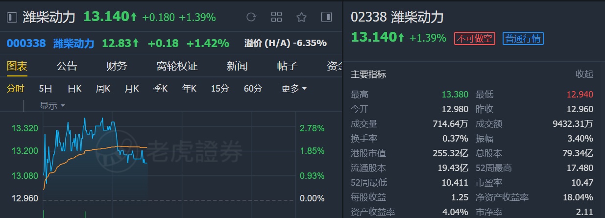 该行认为,潍柴动力股份经过近期的回调后,其买入点具有吸引力,该行相信集团今明两年得到市占率继续增长,上调对其H股评级,由“与大市同步”升至“增持”,目标价由13港元上调至17港元。