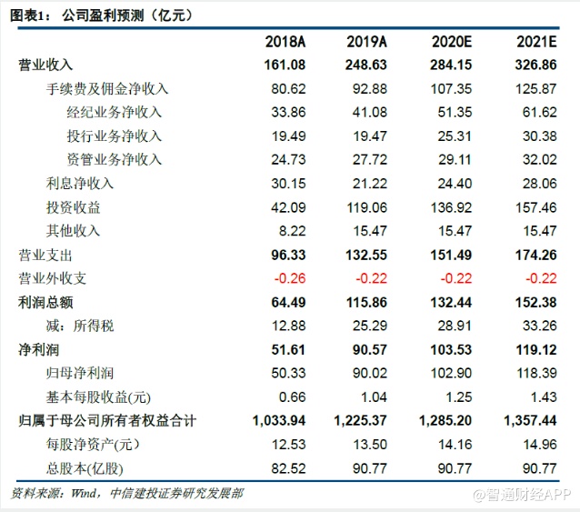 2019年度,公司实现营业收入248.63亿元,同比+54.35%;实现归母净利润90.02亿元,同比+78.86%;ROE 7.94%,同比+2.62个百分点。截至2019年末,公司资产总额5621.81亿元,较年初+52.49%,归母股东权益1225.37亿元,较年初+18.52%;BVPS 13.50元。