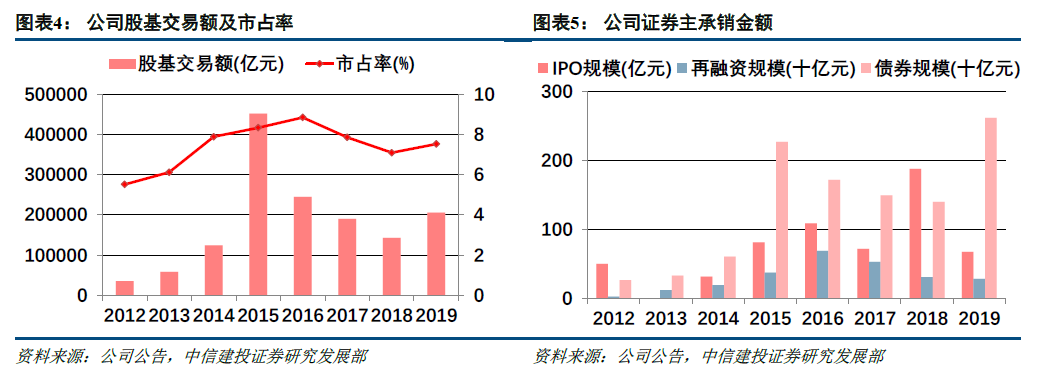 (1)公司实现经纪业务手续费净收入41.08亿元,同比+16.52%,全年股票基金交易量合计20.57万亿元,同比+37.95%,市占率由去年同期的7.10%升至7.53%,稳居行业第一。