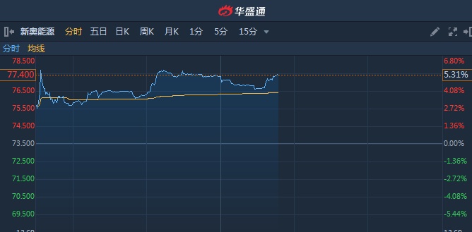 智通财经APP获悉,新奥能源(02688)近日获三菱日联金融增持186.72万股,总金额约1.22亿港元。截至13时46分,涨5.31%,报价77.4港元,成交额1.098亿。