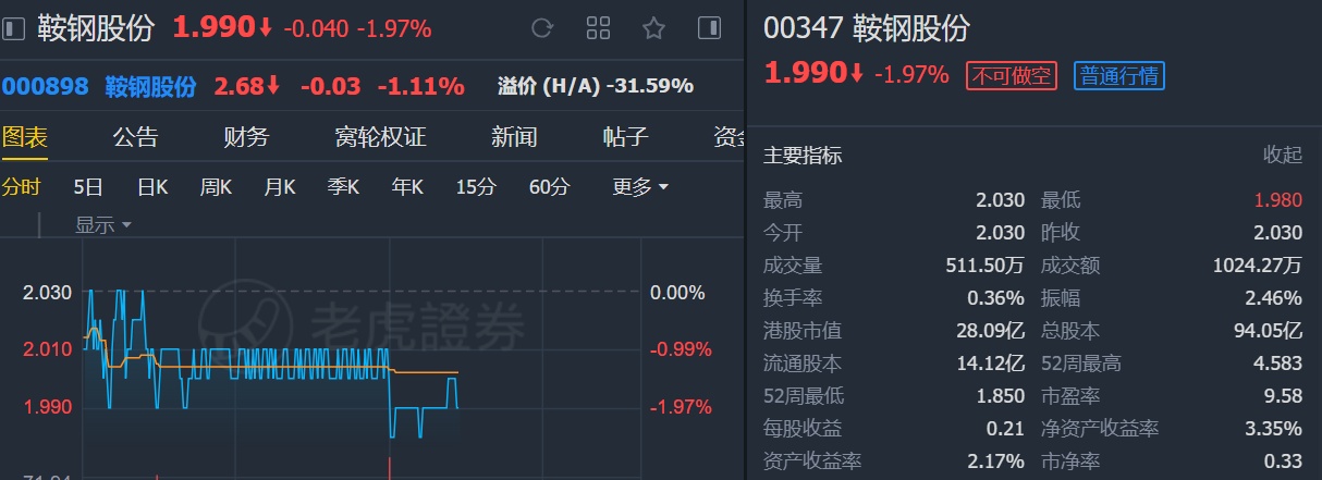 该行下调对鞍钢今明两年盈利预测2%至6%,目标价由2.5港元降至2.3港元,以反映去年实际情况、公司的指引及该行的审慎看法,并维持其“跑输大市”评级。