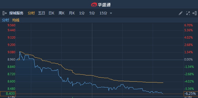 智通财经APP获悉,绿城服务(02869)遭野村下调目标价4%至8.9港元,盘中股价持续走弱,截至15时20分,跌6.25%,报价8.4港元,成交额3638万。