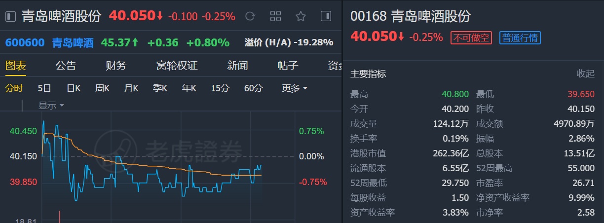 该行将青岛啤酒2020及2021年盈利预测分别降4%及7%,目标价由54.2港元降至42.93港元,维持“中性”评级。
