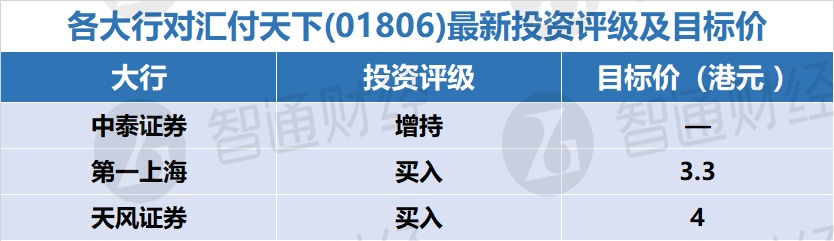 二、各大行对汇付天下(01806)最新投资评级及目标价