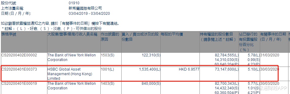 智通财经APP获悉,联交所最新资料显示,3月30日,HSBC Global Asset Mgt (Hong Kong)增持新秀丽(01910)153.54万股,每股作价6.9577港元,总金额约为1068.29万港元。智通财经APP获悉,增持后最新持股数目为7314.76万股,最新持股比例为5.10%。