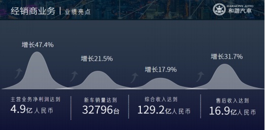 财报显示,作为一家聚焦豪华车及超豪华汽车经销主业的公司,和谐汽车主营业务的净利润达到了4.9亿人民币,同比增长47.4%;新车销量达到了32796台,增幅达到21.5%;综合收入达到129.2亿人民币,增长17.9%;售后收入达到16.9亿人民币,增长幅度是31.7%。
