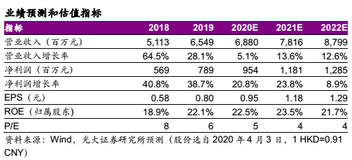 考虑到公司2019年业绩及公共卫生事件对于用气需求及煤改气等施工进度的影响,下调2020、2021年的预测归母净利润至9.5、11.8亿元(调整前分别为10.5、12.3亿元),新增2022年的预测归母净利润12.9亿元。预计公司2020-2022年的EPS分别为0.95、1.18、1.29元,当前股价对应PE分别为5、4、4倍。看好公司高于同业的成长性,维持“买入”评级。