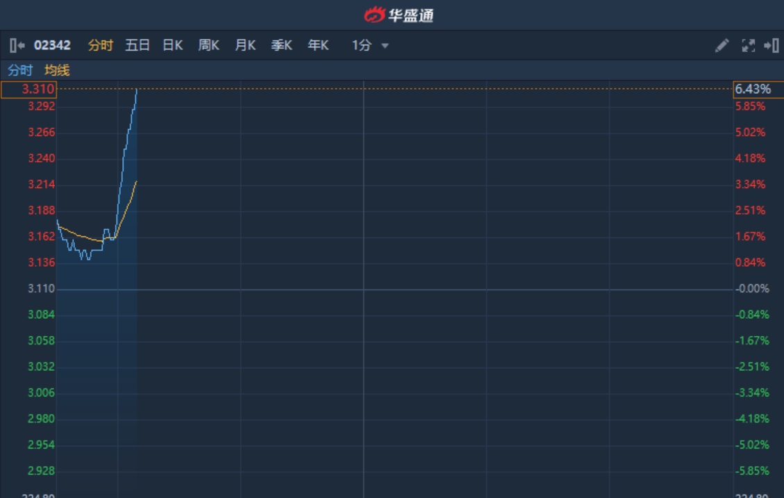 智通财经APP获悉,京信通信(02342)早盘股价直线拉涨,突破所有均线,截至10时08分,涨6.11%,报价3.3港元,成交额7548万。