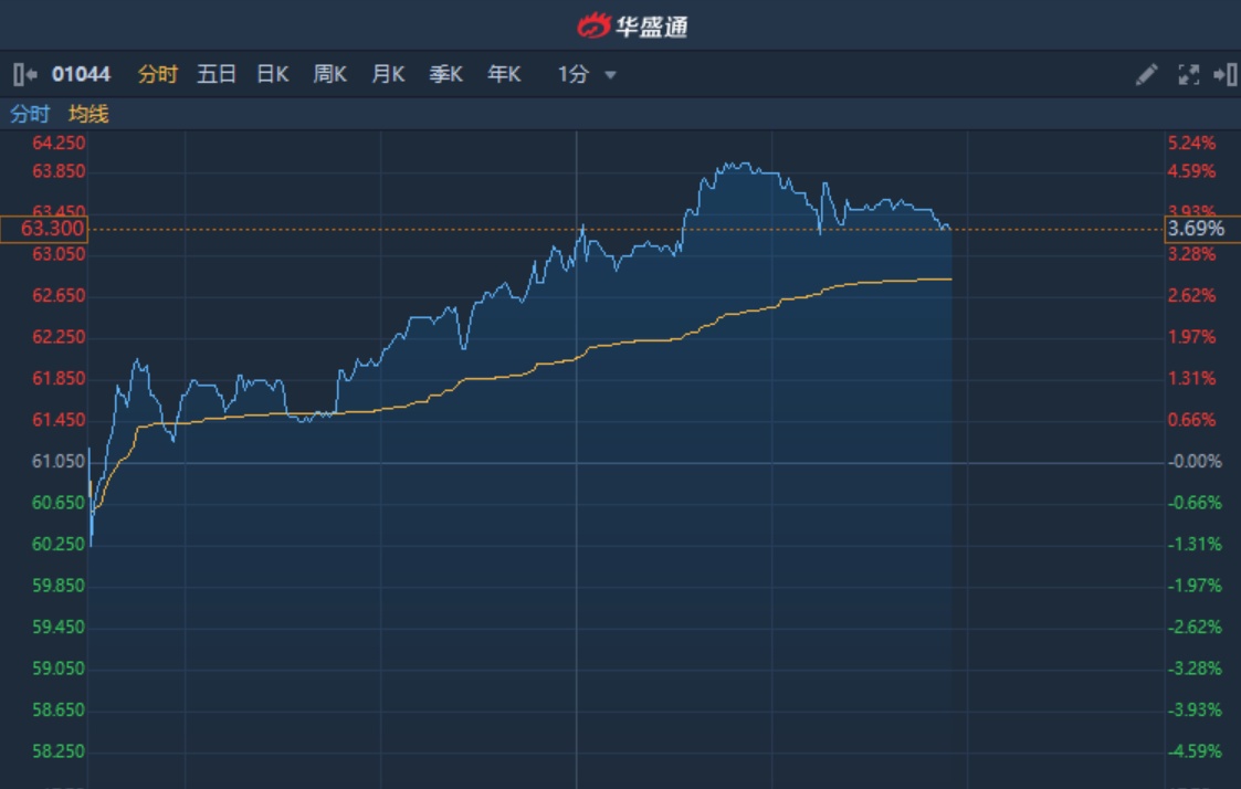 智通财经APP获悉,恒安国际(01044)延续涨势,且获野村看至63.2港元,暂现六连阳,累计涨幅近15%。截至14时54分,涨3.69%,报价63.3港元,成交额2.936亿。