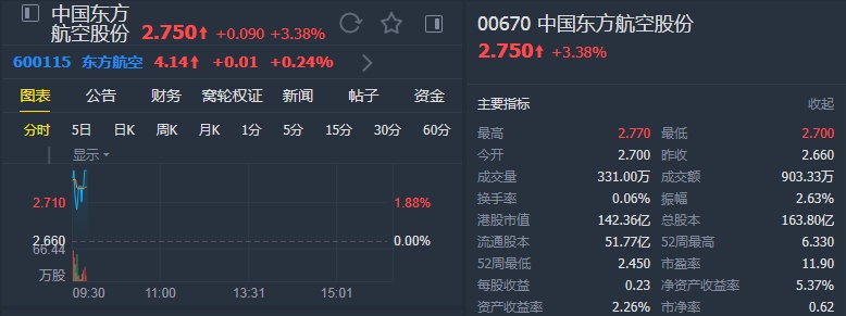智通财经APP获悉,招银国际发布报告称,中国东方航空(00670)2019年业绩符合报告预期和市场预期。该行预计,2020财年公司净亏损 18.80亿元人民币,BVPS将降至4.10元人民币。基于0.9倍市账率,该行下调目标价至4.11港元。公司目前估值为0.6倍2020年预测市账率,低于历史平均水平,维持“买入”评级。