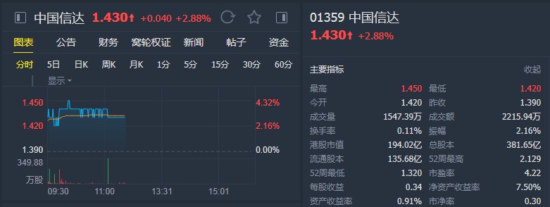 智通财经APP获悉,交银国际发布报告称,将中国信达(01359)目标价由2.35港元下调23.4%至1.8港元,预计2020年公司收入保持平稳,增长将主要来自成本费用,2020-2022年盈利保持个位数增长,维持“买入”评级。