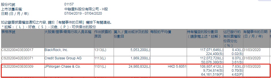 智通财经APP获悉,联交所最新资料显示,3月31日,摩根大通增持中联重科(01157)2486.0832万股,每股作价5.6051港元,总金额约为1.39亿港元。增持后最新持股数目约为1.09亿股,最新持股比例为7.83%。