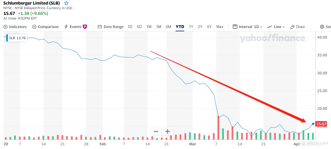 作为全球最大的油田技术服务公司,斯伦贝谢(SLB.US)的股价自2月中旬以来已下跌约55%。随着目前石油减产预期升温,公司的股价是否会迎来拐点呢?