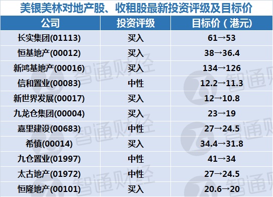 二、美银美林对地产股、收租股最新投资评级及目标价