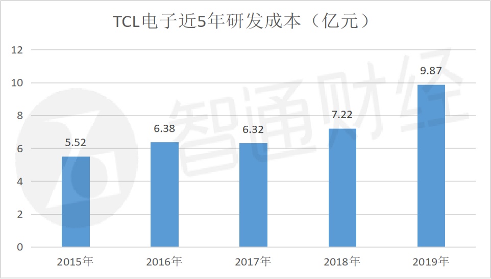 总体来看,2019年TCL品牌电视销售高端化趋势明显,主要得益于公司持续加大量子点、Mini LED和8K等前沿显示科技领域的研发投入,产品竞争力进一步增强。2019年TCL电子研发成本达到9.87亿元,同比增长36.67%。