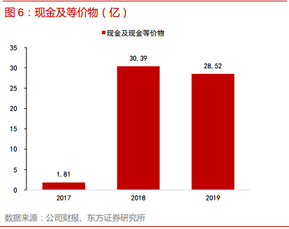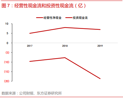 现金方面,截至2019年12月31日,公司的现金及现金等价物+结构性存款+限制性银行结余共计28.5亿元,较18年小幅下降6.1%,是公司加大外延投资的正常结果。公司2019年经营活动净现金流量为6.97亿元,投资活动净现金流量为-18.65亿,较2018年的-7.69亿大幅增加,同时利用部分上市资金偿还银行贷款,因此筹资现金流表现为净流出。