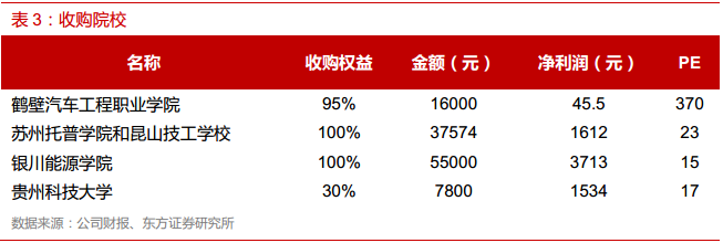 ③外延并购能力强,布局海外市场。2019年公司进行了4所国内并购、1所海外院校的并购,收购对价超过20亿,但商誉仅增加1.14亿。其中鹤壁汽车学院、苏州托普、银川能源学校已经完成并表,贵州科技大学仍以权益法计量,同时2月28日宣布收购马来西亚英迪大学,该校现有超过16500名学生,每名学生每年学费达30000元,后期并表将显著增厚公司利润。