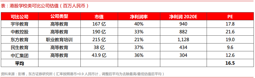 延续首次覆盖报告的估值方法,我们选取可比公司分别为宇华教育(06169)、中教控股(00839)、东方教育(00667)、民生教育(01569)、中汇集团(00382),行业平均调整PE为16.5x,并考虑10%的英迪并表溢价,因此给予公司18.2x估值。公司内生外延成长迅速,我们预测公司20-22E每股收益分别为0.09/0.12/0.14元(原预测20/21为0.08/0.08元),对应人民币1.72元,对应港股目标价1.91元,维持“买入”评级。