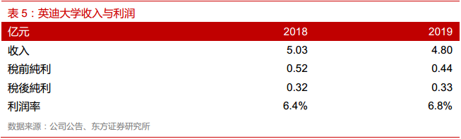 海外并购英迪大学,并购标的质地优良。20年2月28日宣布收购马来西亚英迪大学,该校现有超过16500名学生,每名学生每年学费达30000元,2019年实现收入4.8亿元,税后净利润为0.33亿元,相当19年公司收入的36%,税后利润的7%,后续随着公司管理输出,占比较高的人工成本有望下降,利润贡献将进一步提升。我们认为海外收购本身标的办学资质全、教学特色突出与国内协同效应强,对公司发展具有重要意义。