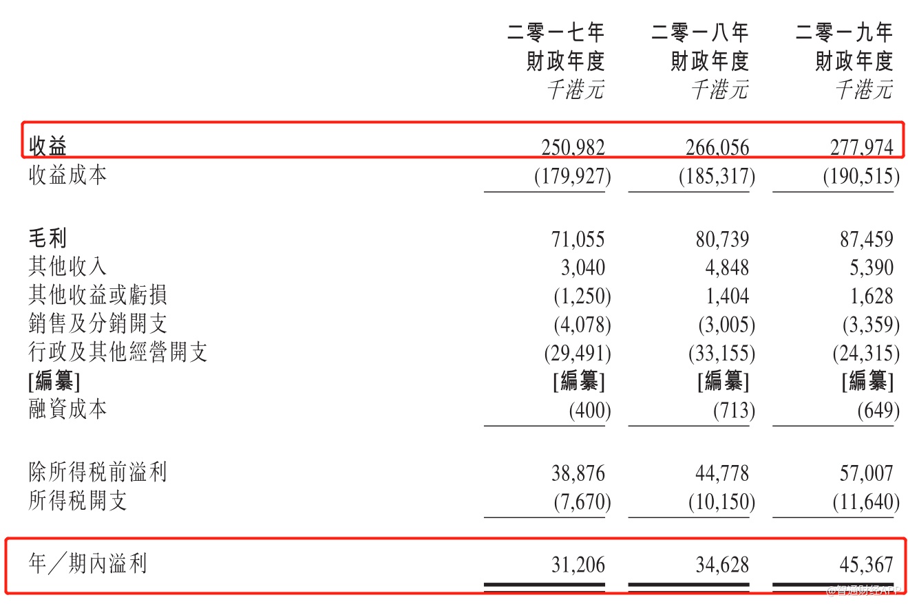 招股书显示,集团于2017-2019三个财政年度,公司分别实现收益为2.51亿港元、2.66亿港元及2.78亿港元;毛利率分别为28.3%、30.3%以及31.5%;期内溢利分别为3120万港元、3460万港元以及4540万港元。期内,风扇是公司最主要收入来源,分别为1.18亿港元、1.28亿港元以及1.41亿港元,占公司总收入的比例分别为47.2%、48.1%以及50.6%。