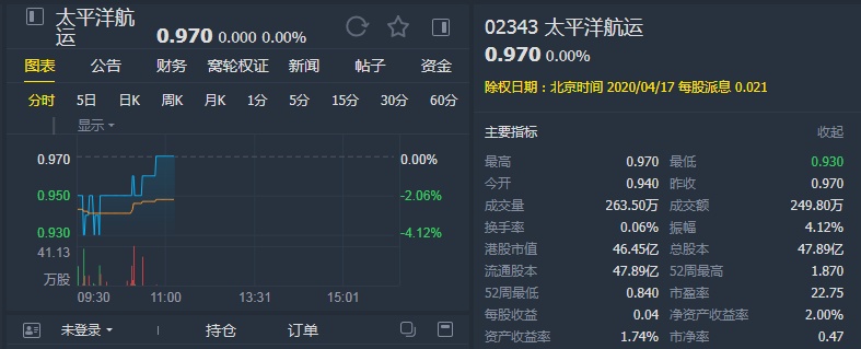 该行表示,将太平洋航运2020至2021年净利润预测平均下调2000万美元,以反映小灵便型干散货船运费表现下跌,部分有被约1500万美元的硫净化器收益所抵消。该行将目标价由1.6港元下调至1.4港元,但认为现价水平已为平均低位,资产负债表比之前更健康,剩余流动资金达3.83亿美元,重申“买入”评级。
