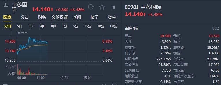 另外,该行仍然忧虑今年下半年半导体库存可能出现调整,估计中芯下半年的收入较上半年会下跌3%,故维持对其“减持”评级,目标价10.5港元,由于估值上升,该行认为市场尚未反映潜在的订单削减。