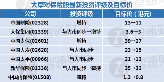 智通财经APP获悉,大摩发布报告称,对保险股最新投资评级及目标价如下表: