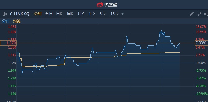 SQ(01463)尾盘涨超11%,高见1.45港元创上市新高,截至15时30分,涨7.03%,报价1.37港元,成交额1611万。