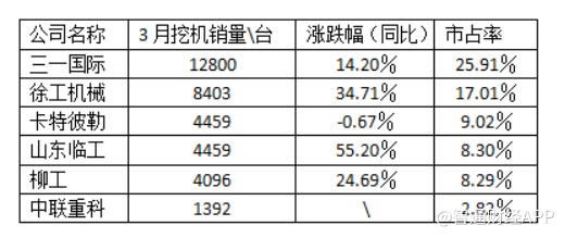 4月7日,来自中国工程机械协会的数据显示,3月我国挖机行业合计销量49408台,同比增加5130台、同比增长11.59%,超出3月初的预判,主要来自国内市场发力。