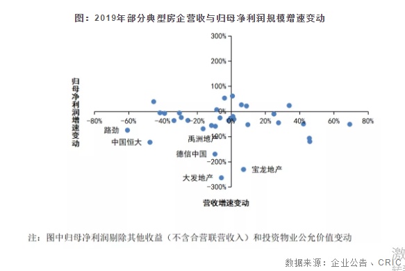 图:2019年部分典型房企营收与归母净利润规模增速变动